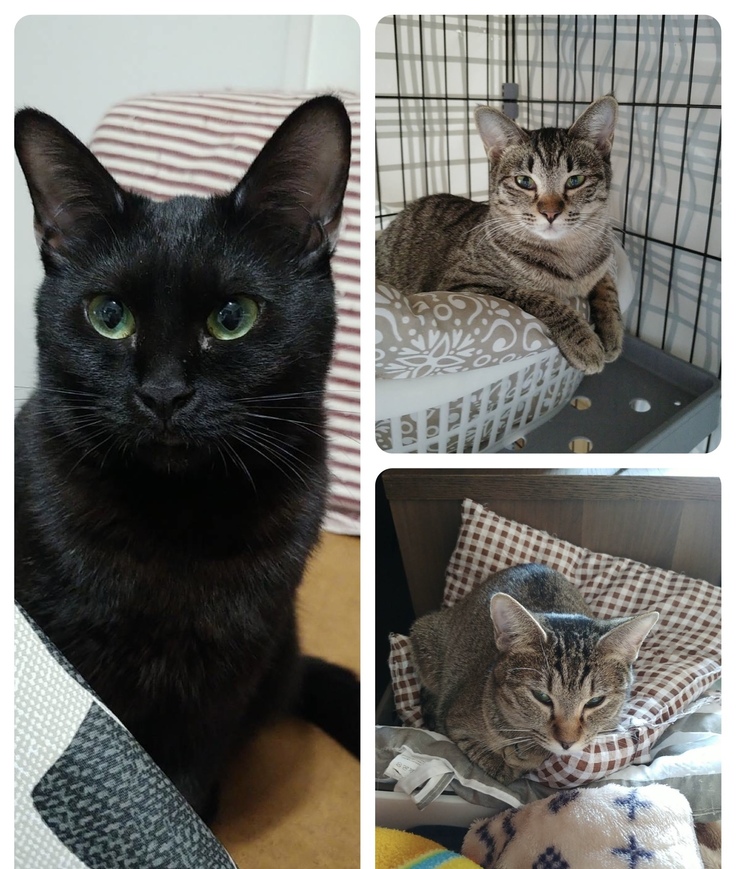 3姉妹チェリーちゃん(左の黒色)、あんずちゃん(右上キジ柄)