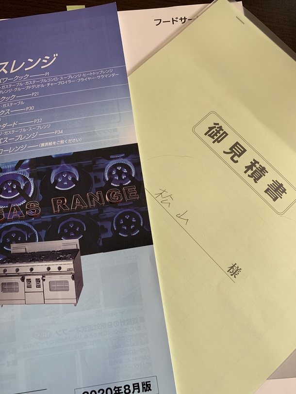 今日は厨房機器の見積りが完成したので打ち合わせをしてきました。