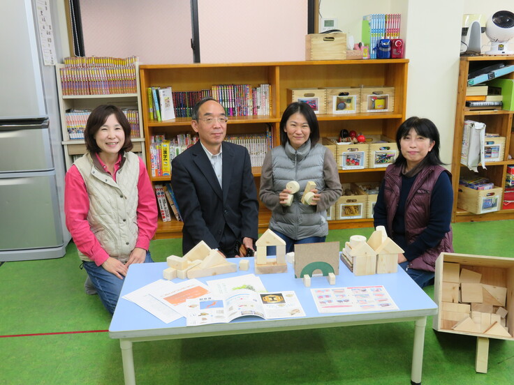 そんな記念日に、㈱プレックコンポーネント様から端材を利用した積み木をいただきました!