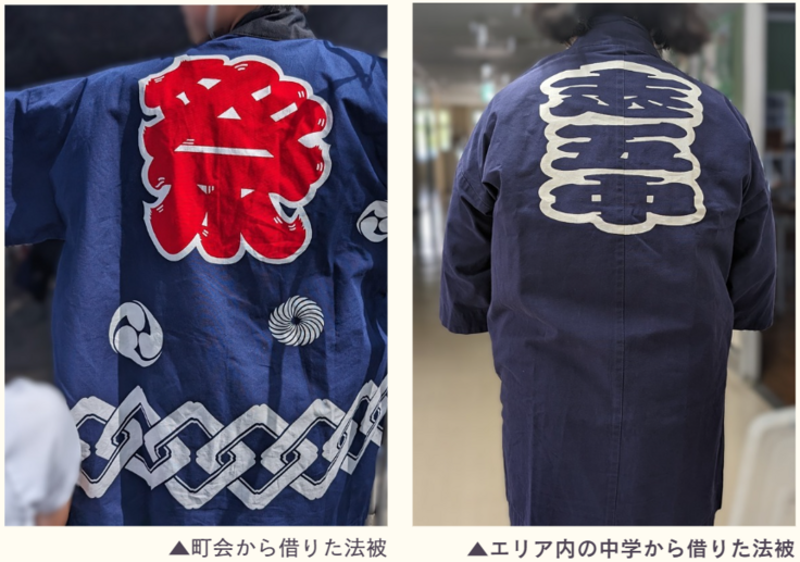 近隣の志村五中はオリジナルの法被を約10年前に少しずつ製作していました。