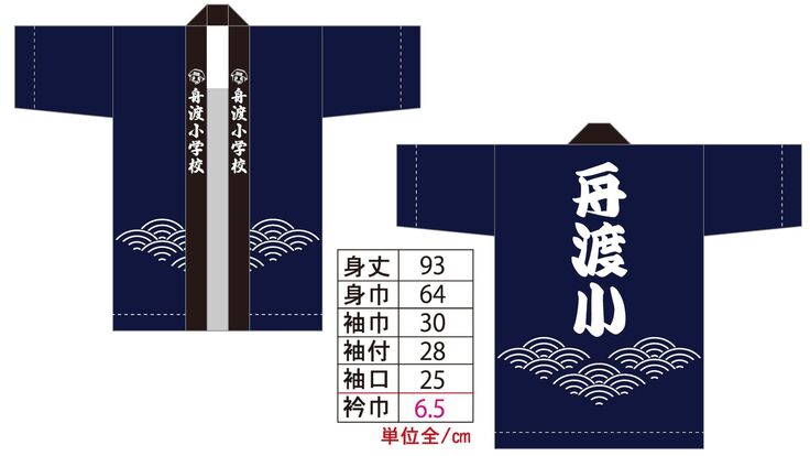 板橋区立舟渡(ふなど)小学校が晴れて創立70周年を迎え、記念事業として法被製作を考えておりました。