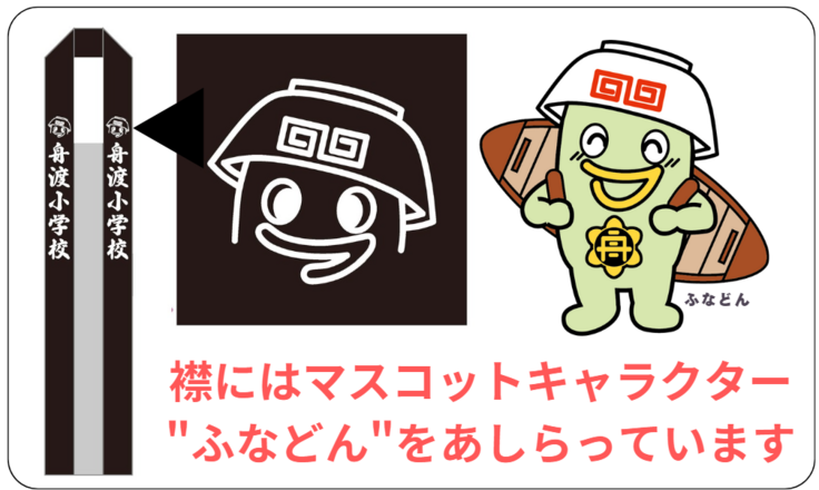 舟渡小の児童に圧倒的人気のふなどん。胸にワンポイントで入って児童を見守ってもらいます。