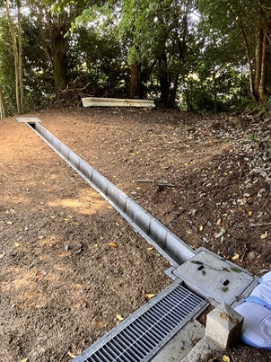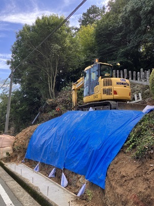 工事の方は、すでに開始しております。先ずは、これ以上崩壊が進まないよう大雨時の排水溝設置工事を行ないました。次いで、崩落した斜面の基礎工事を行なっております。