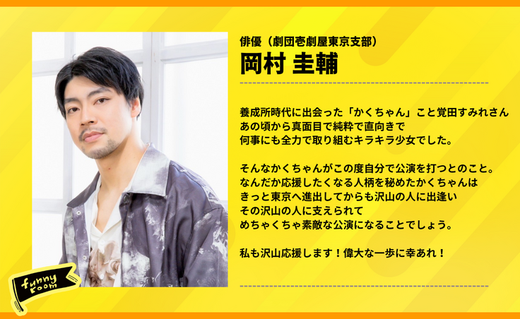 【応援メッセージ vol.7】俳優(劇団壱劇屋東京支部) 岡村 圭輔 さん