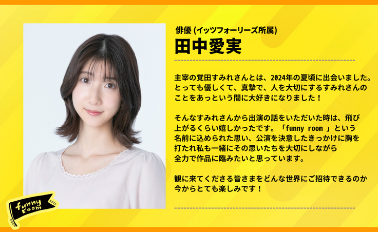 【応援メッセージ vol.9】俳優 (イッツフォーリーズ所属) 田中 愛実 さん
