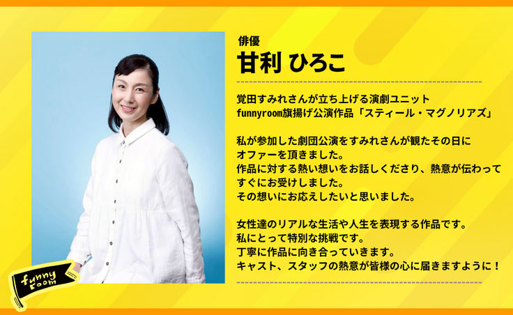 【応援メッセージ vol.11】俳優 甘利 ひろこ さん