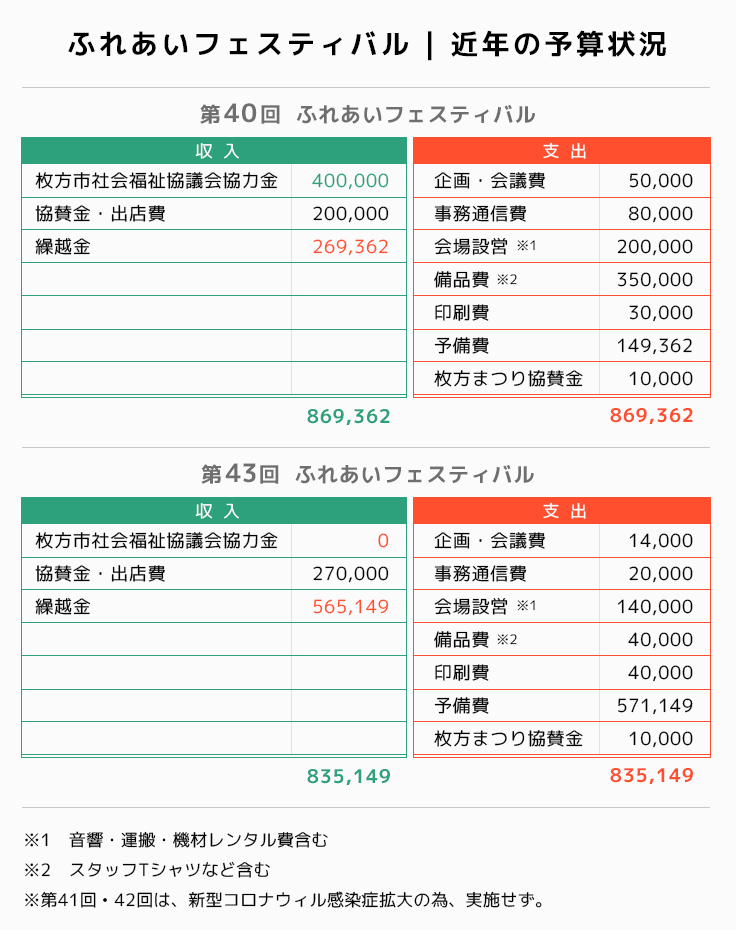 今回のプロジェクトでは、第44回、45回と継続して開催できるようにご支援いただきたいことと共に、「枚方ふれあいフェスティバル」の存在を知っていただきたいという気持ちで実施しています。