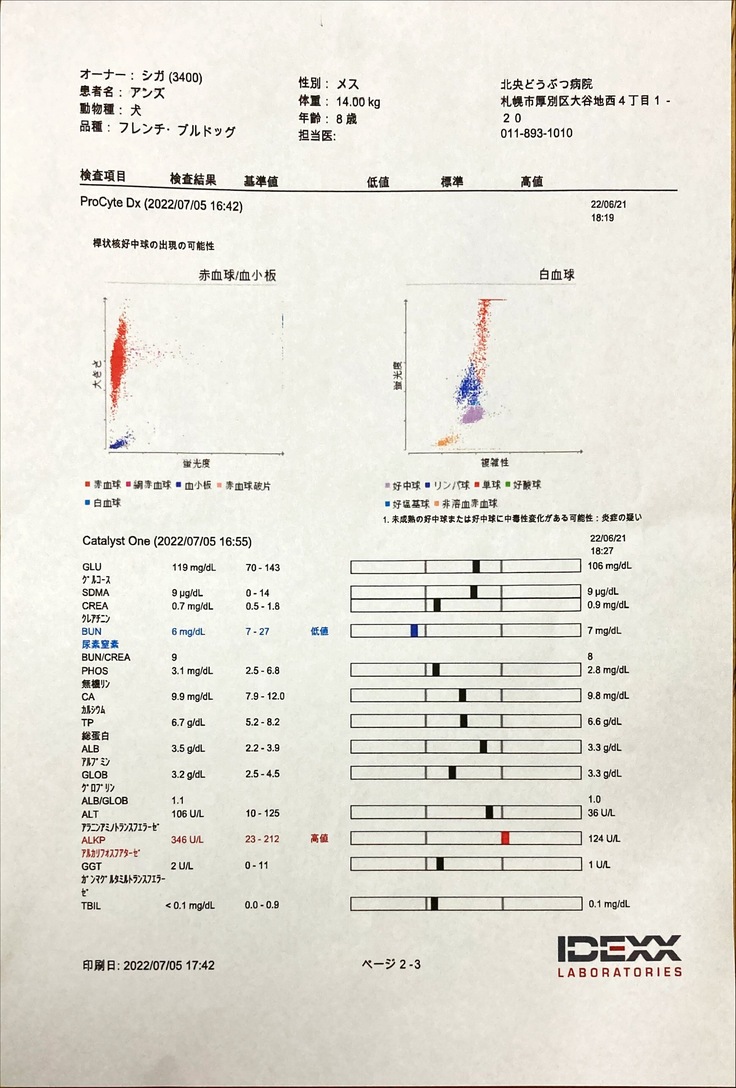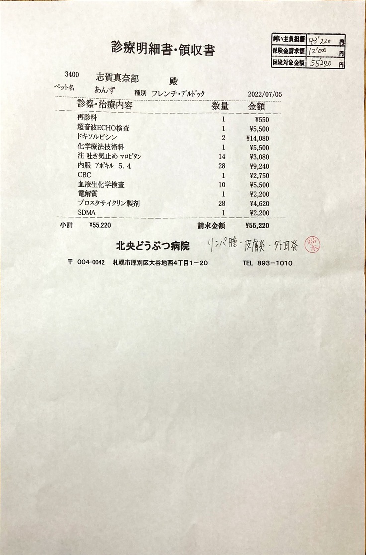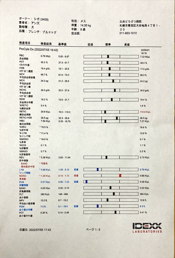 このご時世、色々なモノが値上がりし、毎回行なって頂いている血液検査も、値上される事になった様なのですが、福本院長のご厚意でこのプロトコルが終了する迄、同じ料金で検査して頂けることになりました。