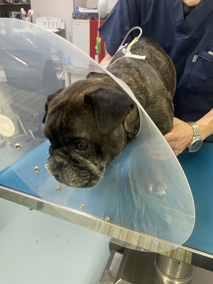 早速抗がん剤投与、栄養剤、吐き気止め、点滴をして貰い、最後にご褒美のチュールで終わりです。
