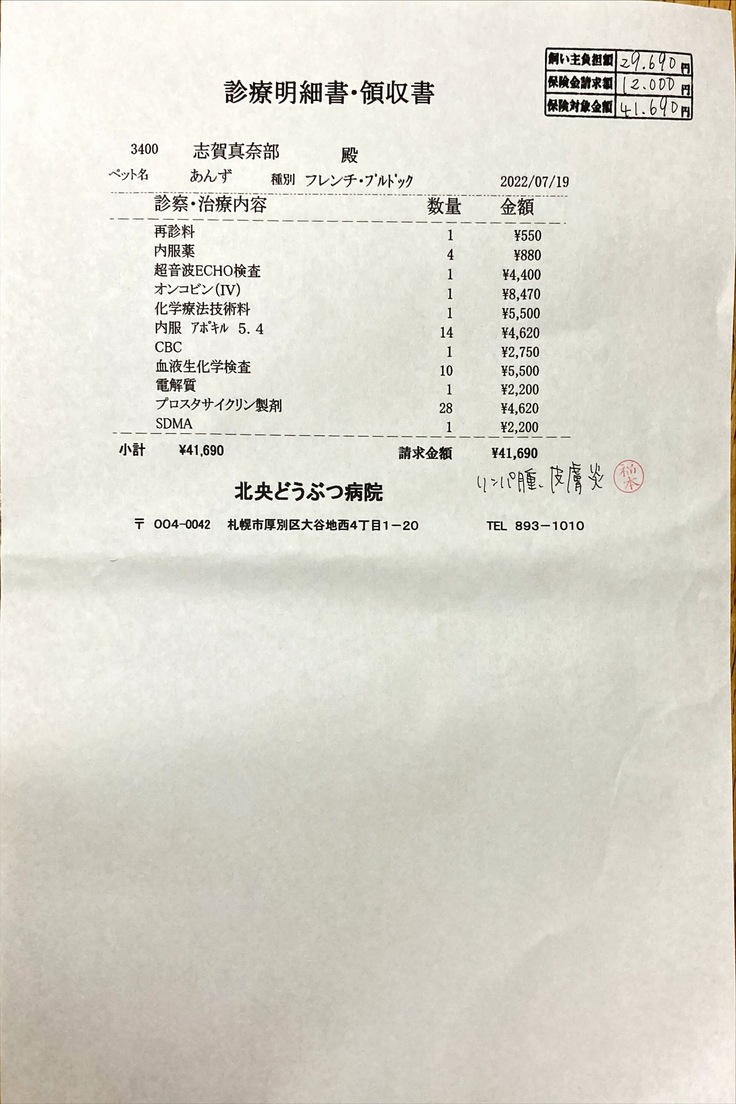 しかし、血液、エコー検査をしてみると抗がん剤投与が可能という事です。