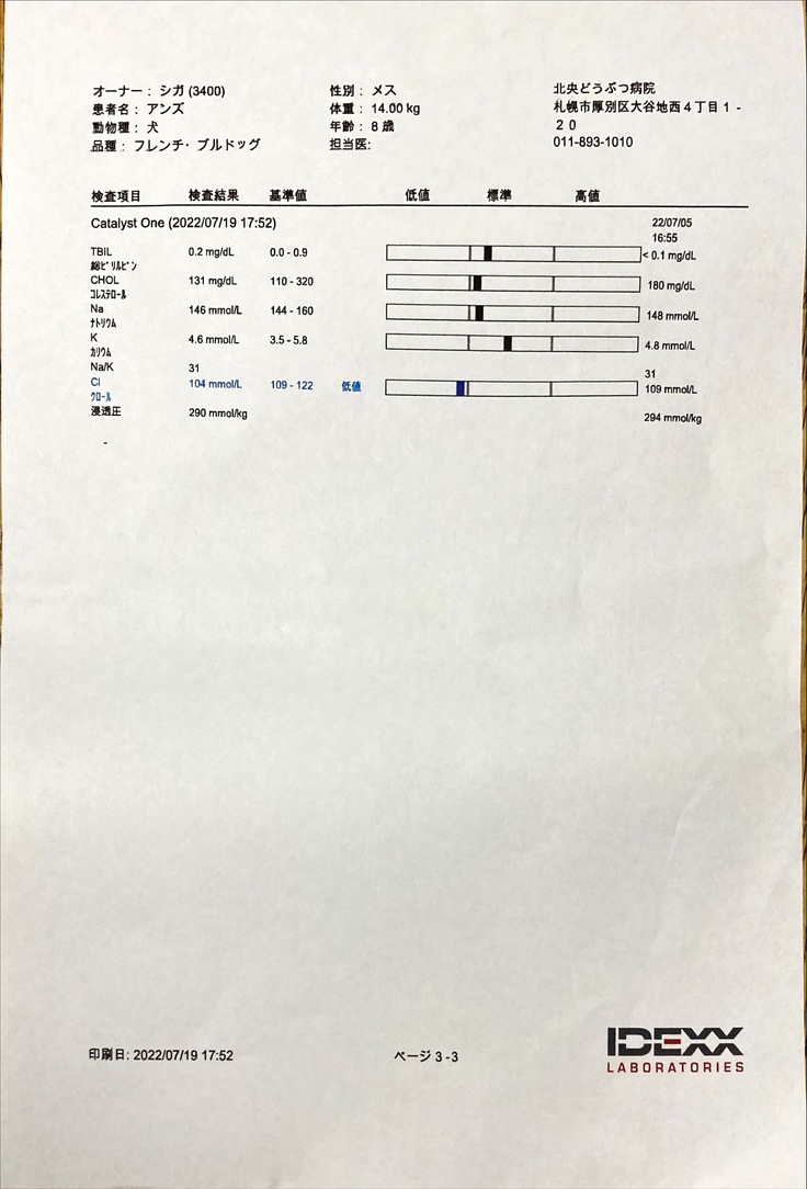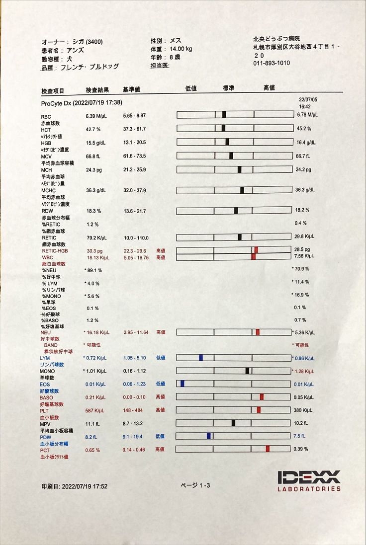 あと少しで治療計画も終わる終盤に来て抗がん剤の影響が出たのかと不安になりましたが、今回も福本院長の丁寧な説明により少しホッとしました。