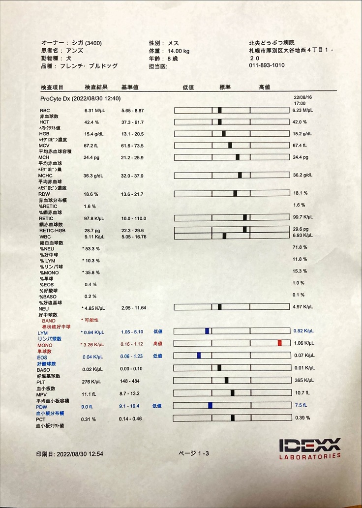 病院の受付をすると直ぐ診察に入る前に福本院長よりリンパ腫の再発の可能性は低いと思われます。と、とても嬉しい結果を聞けました。