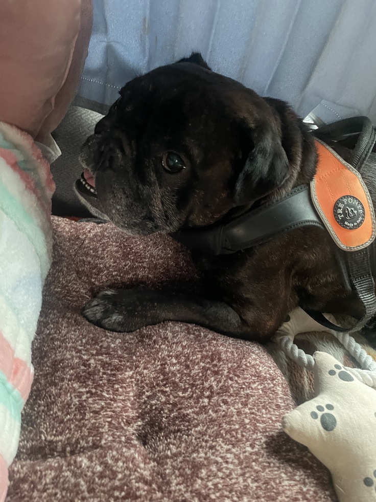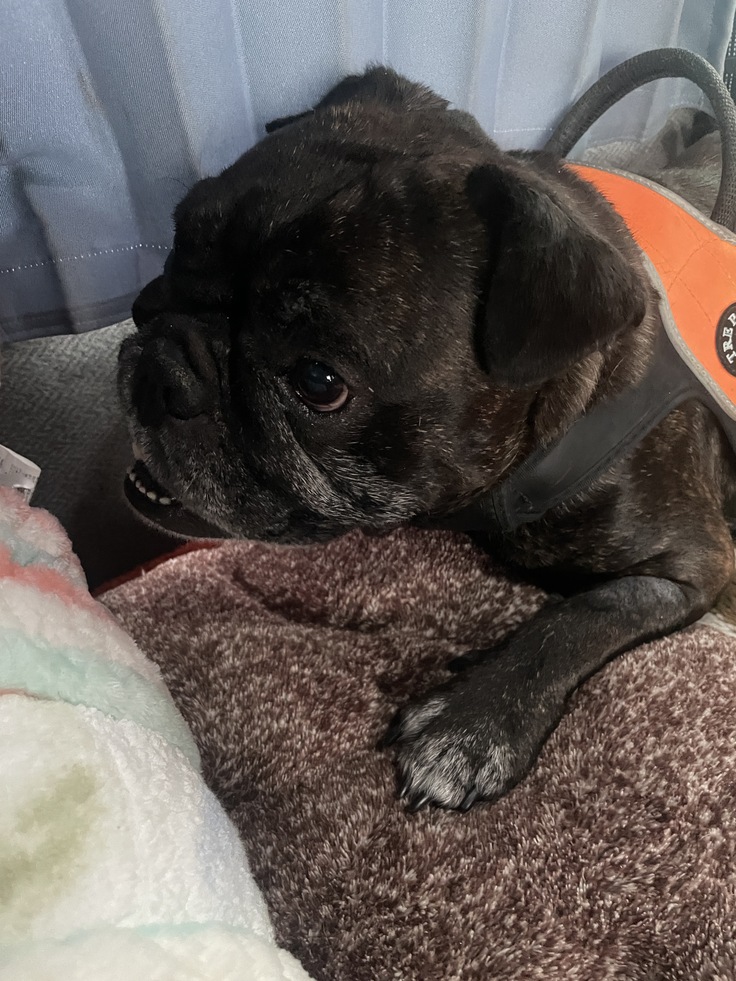 本当ならこの抗がん剤は時間をかけてゆっくり投与するらしいのですが、動いて少しでも漏れてしまうと最悪手足の切断もあり得るため、北央動物病院の福本院長のご提案で2日に分けて行なってもらっています。
