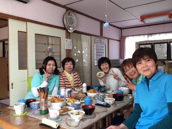 (自慢の手料理を出し合いながら美味しい楽しい昼食会の様子です)