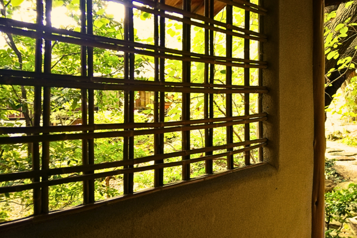 連客(れんきゃく お連れのお客様)側の袖壁には窓が設けられ、そこから見える景色を楽しむことができます。
