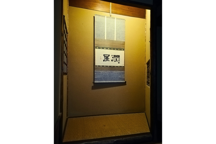 爲三郎記念館の茶室「知足庵」の床の間に飾られているお軸です。