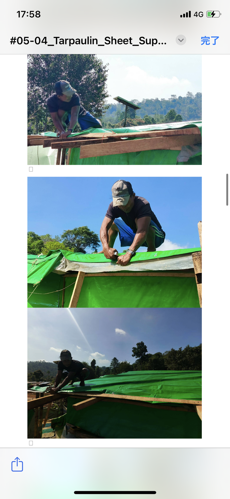 ・避難先の仮住まい用テントに使われるシート120枚を配布