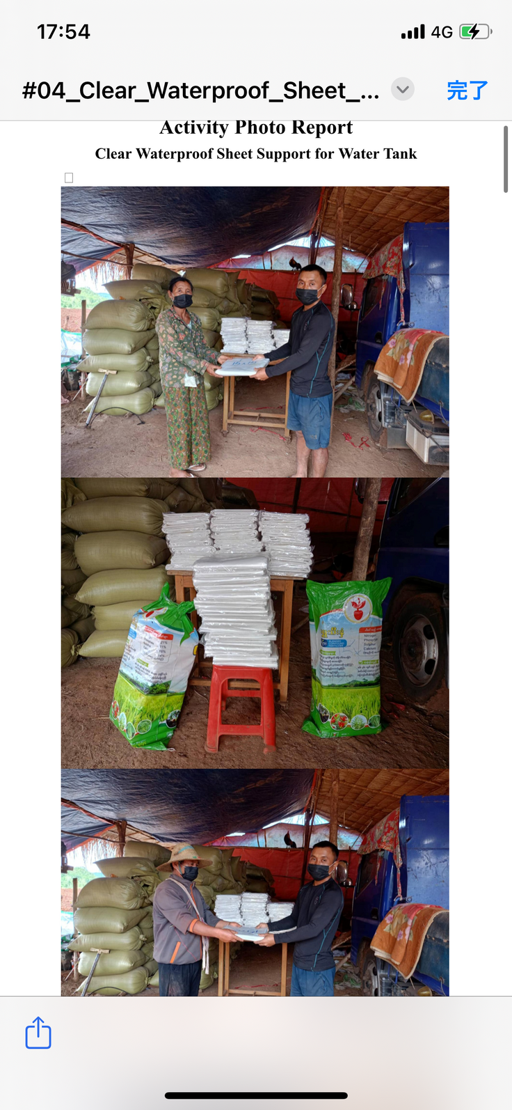 ・避難先の貯水タンク用に使われるシート200枚を配布