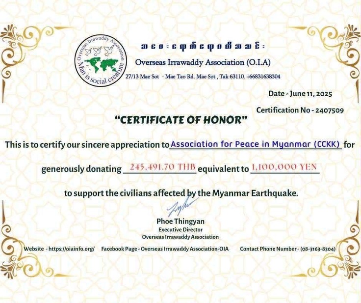 1.Overseas Irrawaddy Association (OIA)(支援額:110万円)