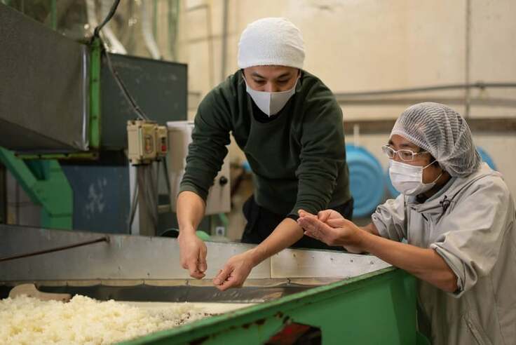少しでも酒の仕込みに関わりたいと、旭鳳酒造の社長に相談したところ、今日ならば大丈夫!ということで、蔵での作業に加わらせていただきました。