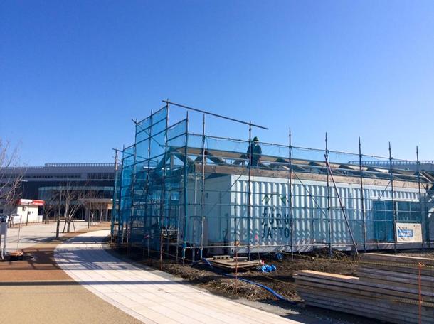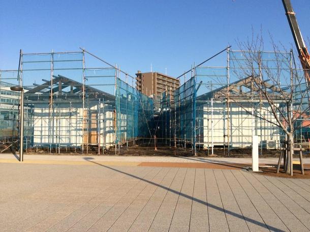 だんだんと形が出来てきました。足場とネットが外れるのが楽しみですね。