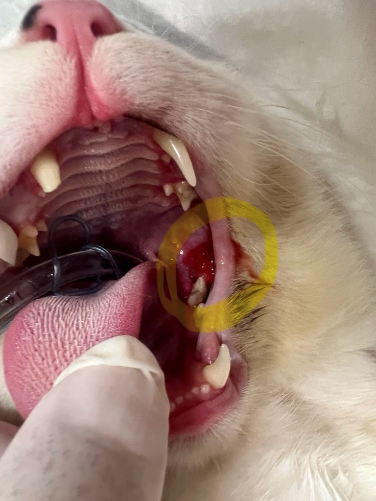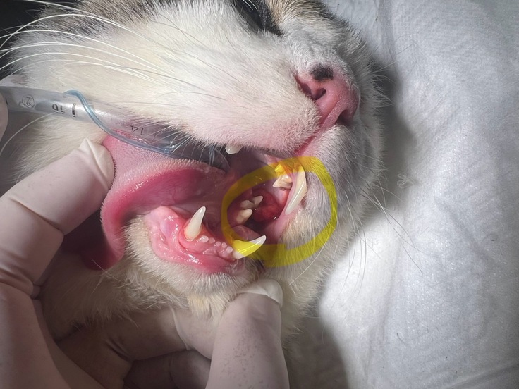 「何か腫れている?おかしい?」と心配になり、病院へ連れて行ったところ、口の中に腫瘍らしきものが見つかりました。
