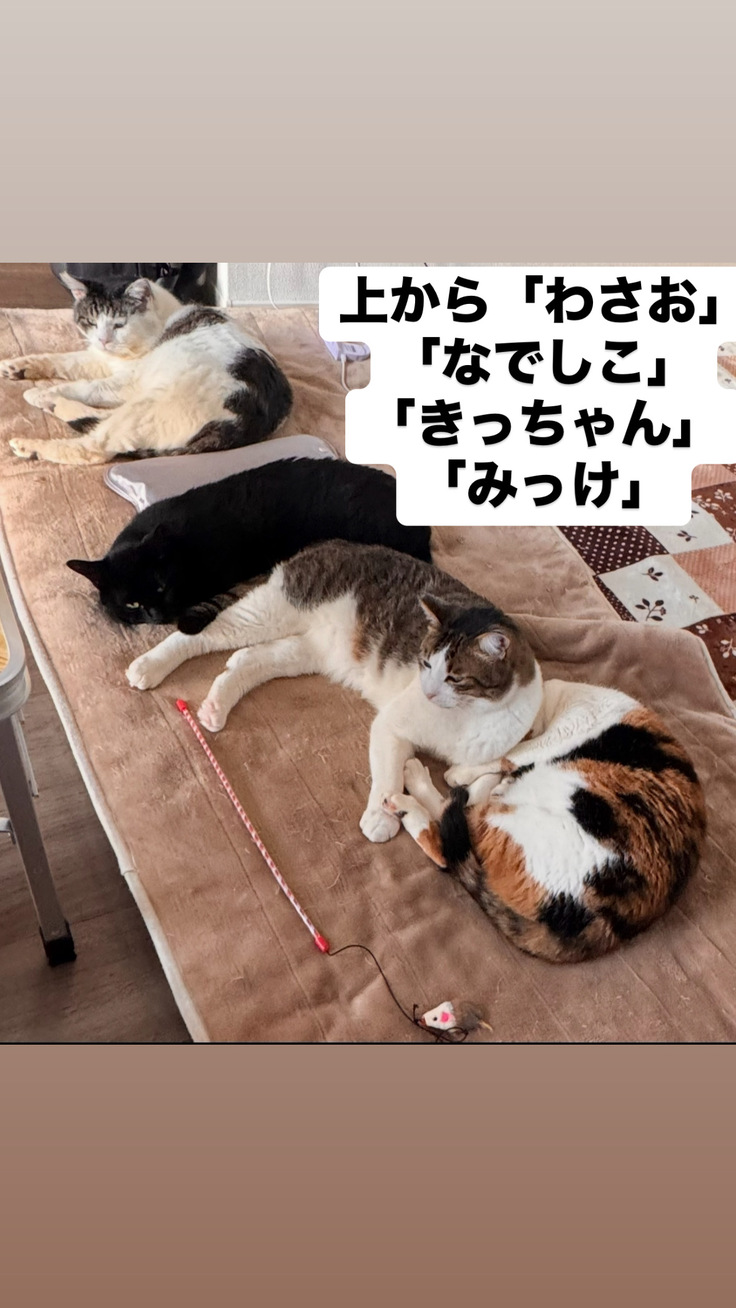 最近では日向ぼっこをしながら、うとうとお昼寝する姿を見せてくれたり、先住猫たちに母性が出るのか、そっと毛づくろいしてあげたり…なでしこらしい、優しさを感じる場面が増えてきました。