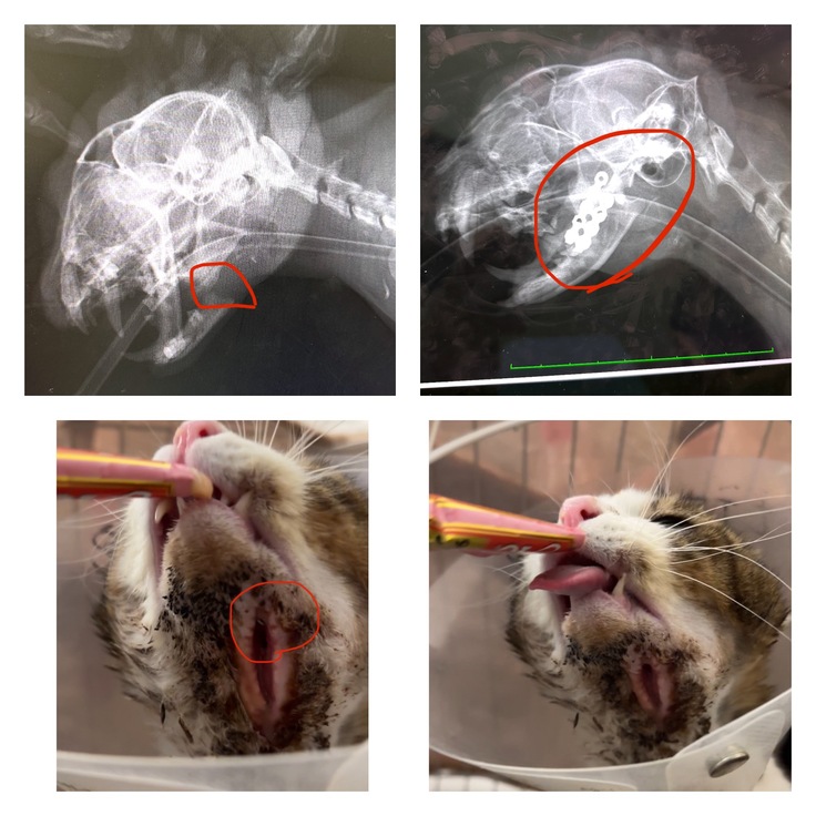無事に手術は終わり、先生から言われたのは「治るまでの3ヶ月ほどは、家でケアしてあげてくださいね」という言葉。【ボルトを入れて顎の下は皮膚が薄く縫うことが難しく自然に皮膚が繋がるのを待つだけだったので痛々しいです。】