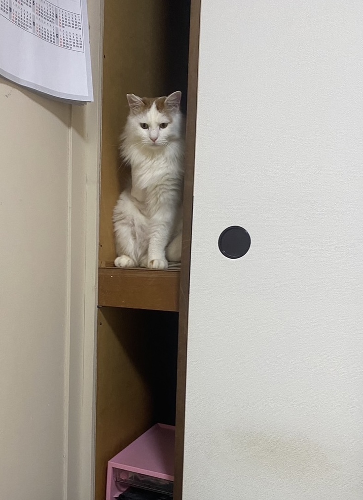 私としては、ふさふさの毛を思いっきり撫でてみたい…という気持ちがあるのですが、今はそれよりもレンが落ち着いて過ごせることが何より大切だと思って、タンスの扉は自由に開けてあります。