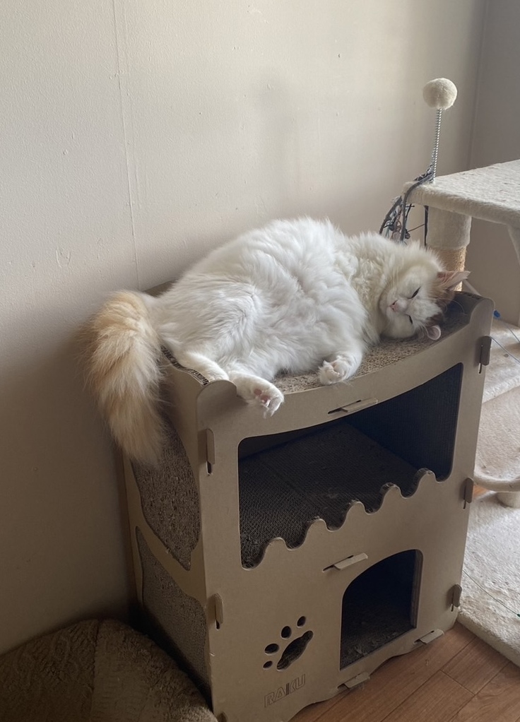 レンはふわふわの毛並みが自慢なのですが、暑さが厳しくなってきたこの頃では、見ているだけで「あつそうやなぁ〜」と思ってしまいます(笑)。でも、のんびりとした姿に日々癒されています。