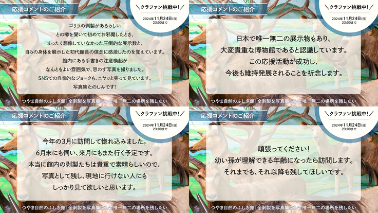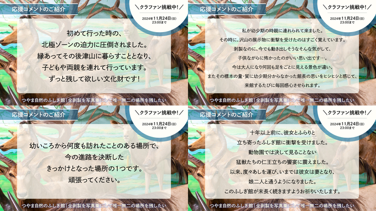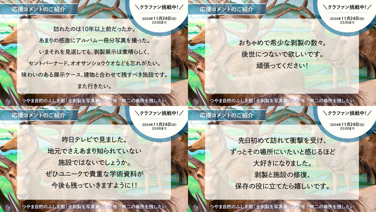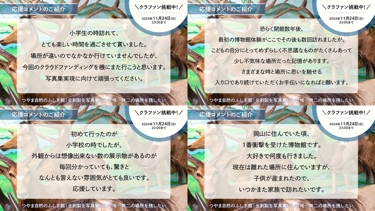 いただいたコメントはすべて「つやま自然のふしぎ館」へも共有しており、館長をはじめふしぎ館の皆さんにも嬉しくお読みいただいています。