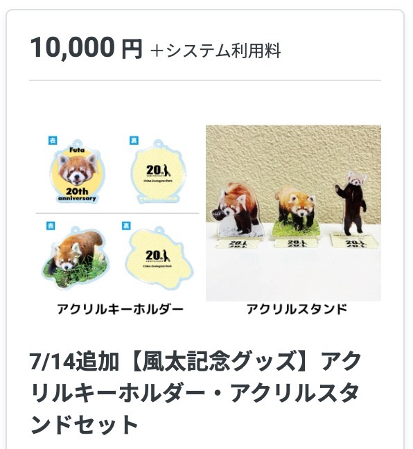 風太20周年記念グッズのアクリルキーホルダーとアクリルスタンドのセットをお届けします!お部屋に飾ったり、風太と一緒にいろんなところにお出かけしたり、楽しんでいただけると嬉しいです!