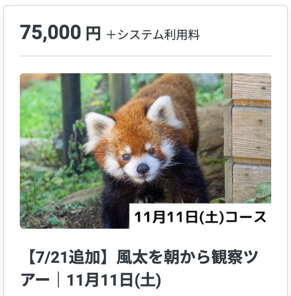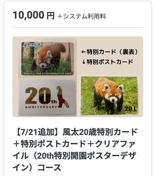 風太20th特別ポストカード、特別カード、クリアファイル(風太20th特別開園ポスターデザイン)非売品コースと風太を朝から観察コースを追加しました!