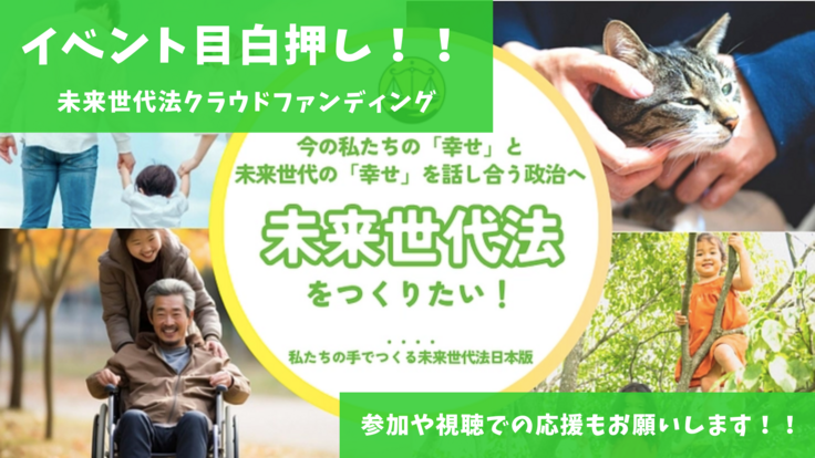このクラウドファンディング期間中、「私たちの手でつくる未来世代法日本版プロジェクトチーム」では、さまざまなイベントを予定しています!