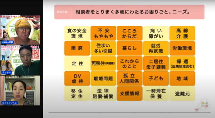 でも、移住と行っても、自分で岡山を選んできたのか、そもそも移住すること自体、果たして選択だったのか、、、そもそも、原発事故がなければ、移住なんて考えなかった、、、という人も多くいるなか、本当に一人ひとりのニーズ、思い、これからどうしたいのかに個別に寄り添い、エンパワメントする必要があったといいます。