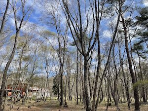 学校寮区という、各大学・中高校、自治体の山の家などが広大なエリアの中に点在する文教地区にあり、竹早山荘だけでも1万坪を超える広大な森を有しています。