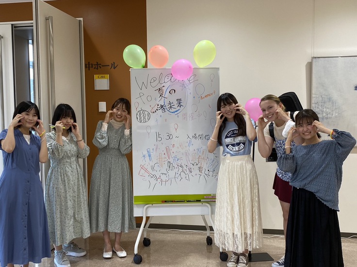 私たちは現在、2年生7人、4年生4人の計11人という少ない人数ではありますが、OGたちとともに日々楽しく活動をしています。地域や学内のイベントで機会をいただき、アンサンブルの形式で演奏を行っています。