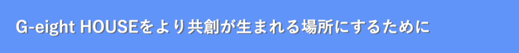 G-eight HOUSEは住む場所をシェアするのではなく「知識・経験をシェア」することをコンセプトに、住むメンバー達の”選択肢”を広げる場としたいです。