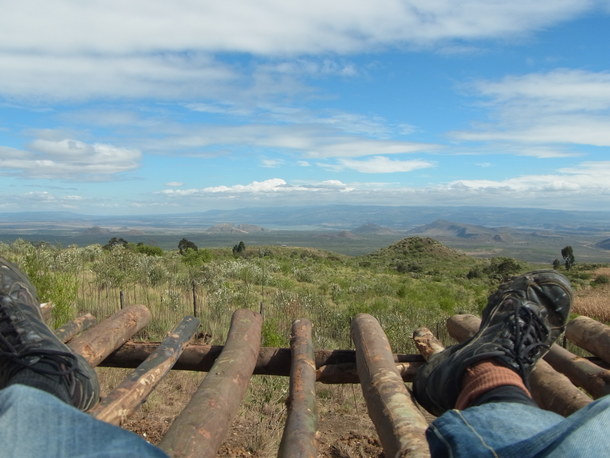 2階を作りだした時点で、これからベランダになる予定の場所に座ってみましたが、この眺めが2階のベッドルームの窓とベランダから見えるようになります!目の前遠くに見える湖はエレメンタイタ湖、この写真では見えにくいですがさらに左奥にはナクル湖が見えます。