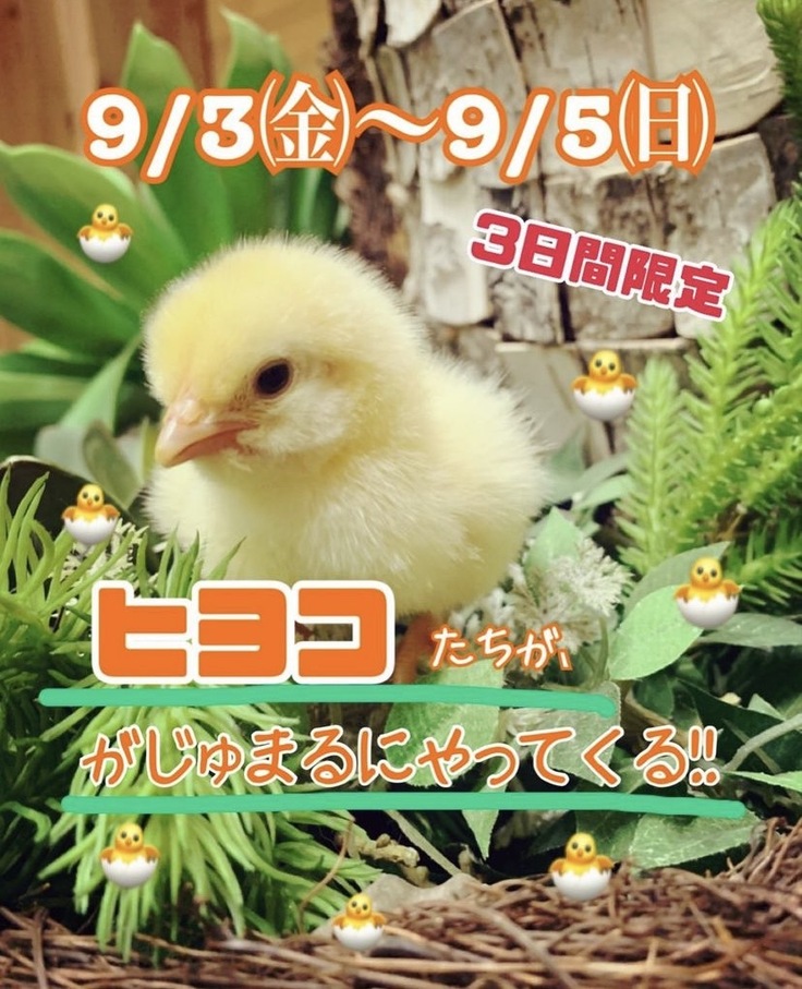 普段意外と見る事のない可愛いひよこ達、前回開催時も多くのお客様からご好評いただいたイベントでしたので、ぜひこの機会にご来場下さい!!