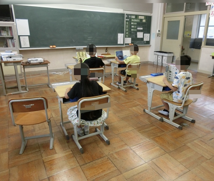 このように1クラスに二学年合同で学んでいます。移住者、地元民混合しています。