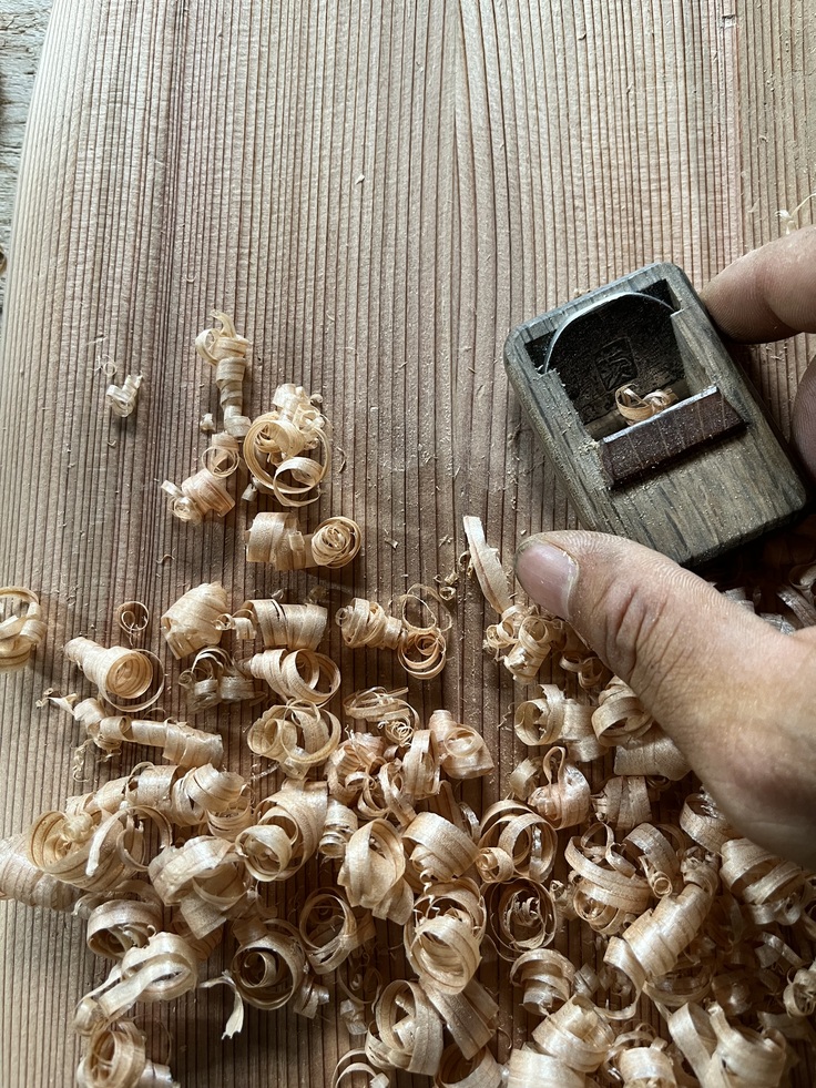 しかし、この柔らかい杉を鉋で仕上げる事は、かなりハードルが高い事でした。