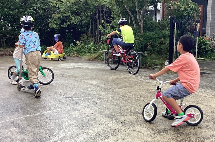 今日の石巻は時折天気雨に降られる、変わりやすい天気。お勉強が終わって、子ども達は雨に濡れながら自転車遊びに興じています。自転車は交代、交代。ケンカをしながらどうやったらうまくいくかを考えて、子ども達同士でルールを決めて遊んでいます。それが成長の第一歩だと考えています。(広報・木村整)
