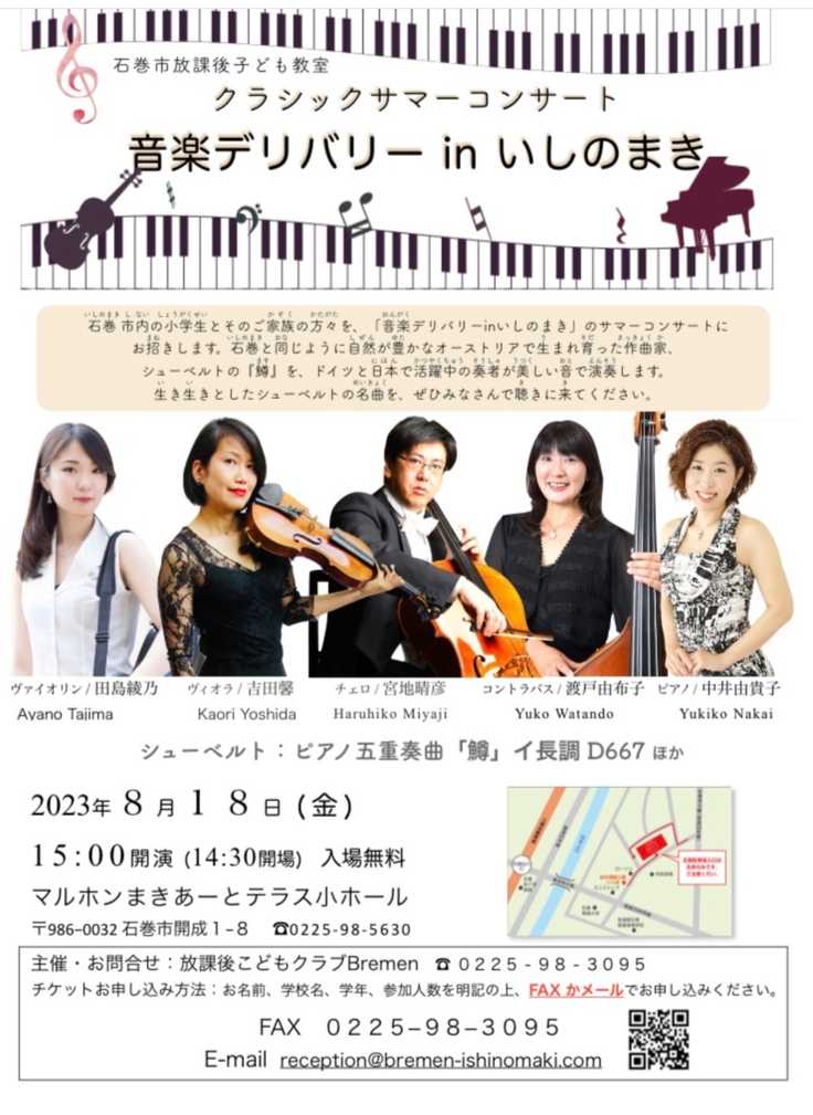 2020年にコロナ禍のために学校が外部の方には来県を遠慮していただく中、民間学童のBremen は休まず開設し、放課後子ども教室も運営しておりましたので、そのようなご縁で「日本とドイツの絆コンサート」を受け入れさせていただきました。受け入れる側も「恐怖感がなかった」と言えばうそになりますが、万全の態勢で受け入れました。