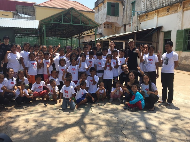 カンボジアプノンペンにある孤児院、右下の水色Tシャツが4歳の頃の僕です。北海道の支援活動で残ったTシャツを700枚寄付していただき、カンボジアに届けた時の写真です。