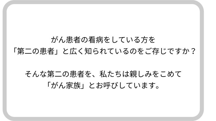 「がん家族」への温かいお気持ちに感謝の思いと、背中を押していただいている気持ちになりました。