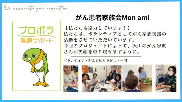※がん患者家族会Mon amiは、一般社団法人Mon amiの事業のひとつです。
