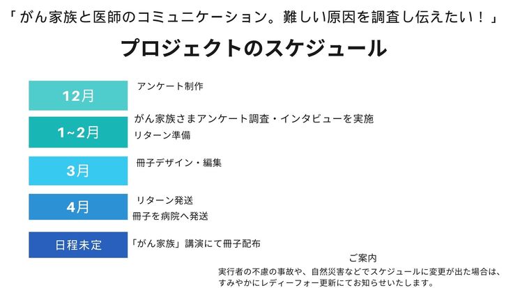 今回のクラウドファンディング「がん家族と医師のコミュニケーション。難しい原因を調査し伝えたい!」に