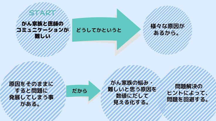 今回製作する冊子は「がん家族と医師とのコミュニケーション」を円滑にするためのモノです。