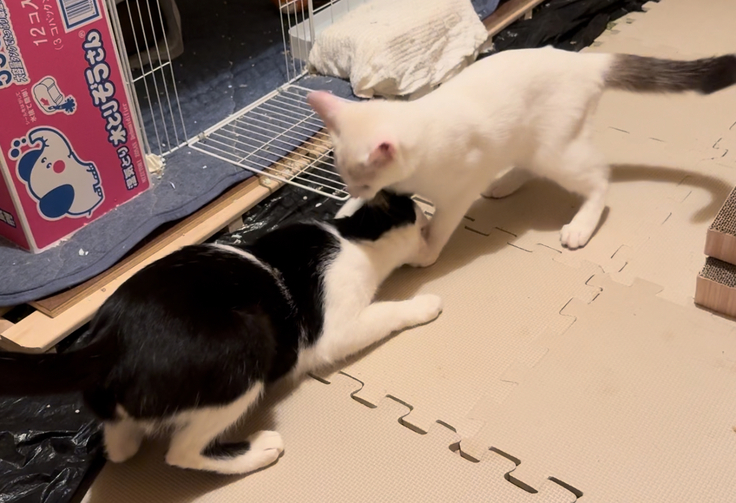 食欲低下以外に特に体調の変化は見られませんし、台風の時と同じように元気に走り回っています!アテネと一緒に大運動会をして盛り上がっていますので、少し安心しています。